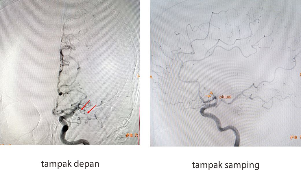 Sumbatan pada a. Cerebri Media (MCA) kiri.